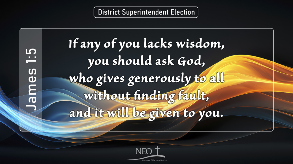 We read in James 1:5, “If any of you lacks wisdom, you should ask God, who gives generously to all without finding fault, and it will be given to you.” Let’s pray together for God’s direction for our district!